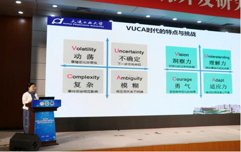 大連工業(yè)大學教授谷力群以《基于VR測評的大學生領(lǐng)導力提升策略》為題,從VUCA時代的特點與挑戰(zhàn)談起,引出包含3個維度、6個要素和21個指標在內(nèi)的大學生領(lǐng)導力潛質(zhì)3E模型,介紹了其在本校“眾行”項目實施方案中的實踐效果。接著,她重點介紹了以虛擬現(xiàn)實、行為考察+精準編碼、沉浸式體驗、新科技+大數(shù)據(jù)為代表的幾類大學生領(lǐng)導力測量工具,及新技術(shù)、新形勢驅(qū)動下的大學生領(lǐng)導力提升效果檢驗。