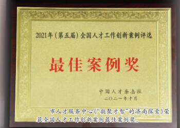 市人才服務(wù)中心《“數(shù)聚才智”的濟(jì)南探索》榮獲全國人才工作創(chuàng)新案例最佳案例獎(jiǎng)。